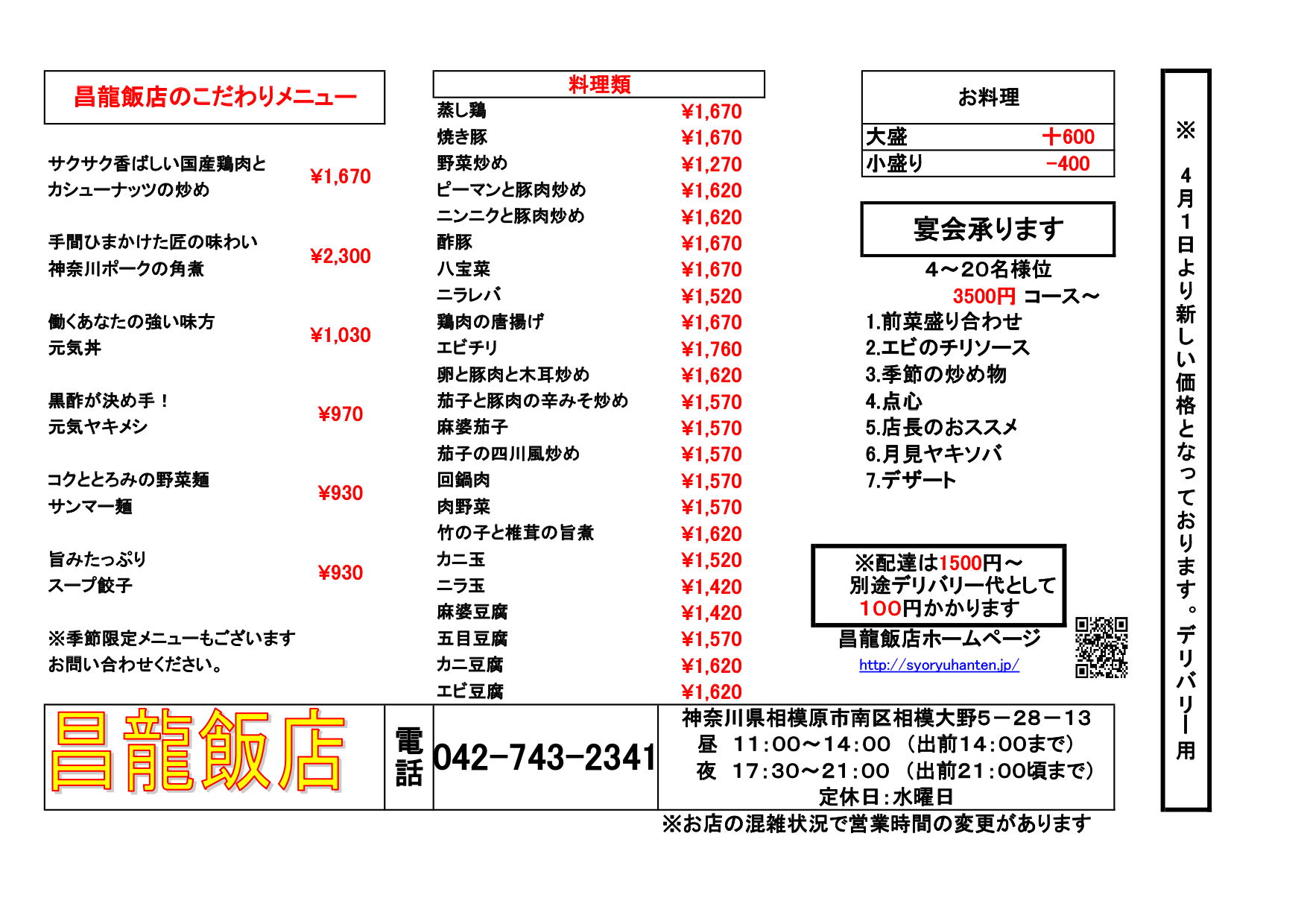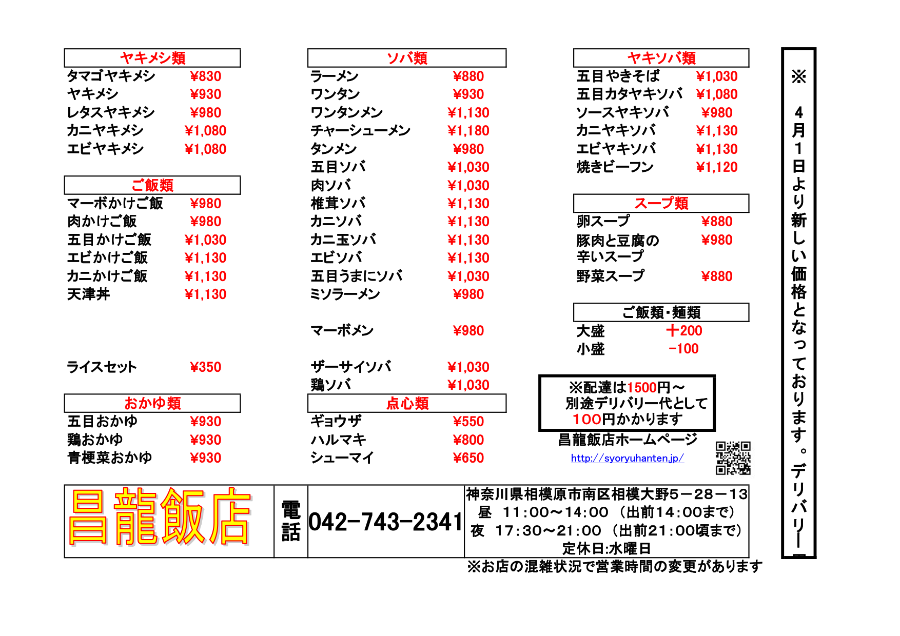 店内状況によって配達をお断りする場合がございます